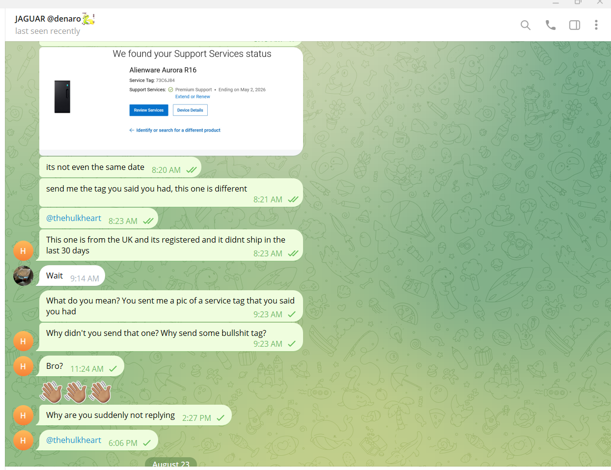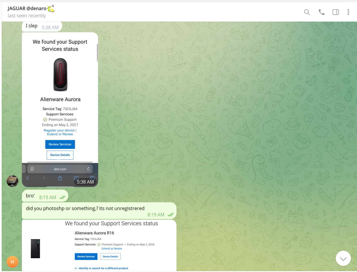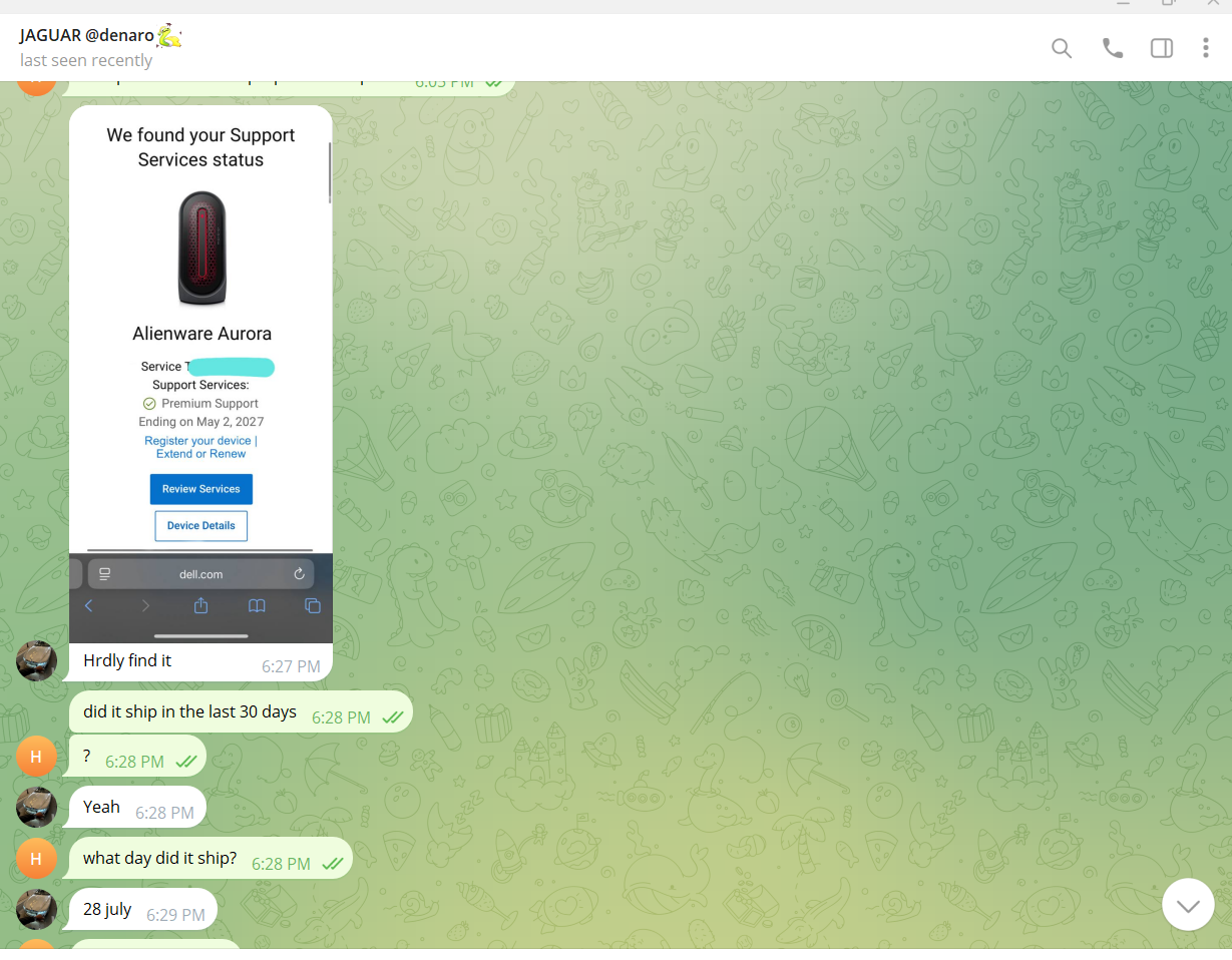 I made a thread asking for dell serial number sellers, I was messaged by markeloff411 aka @thehulkheart on telegram- you can see other posts on this site where he says that is his telegram.