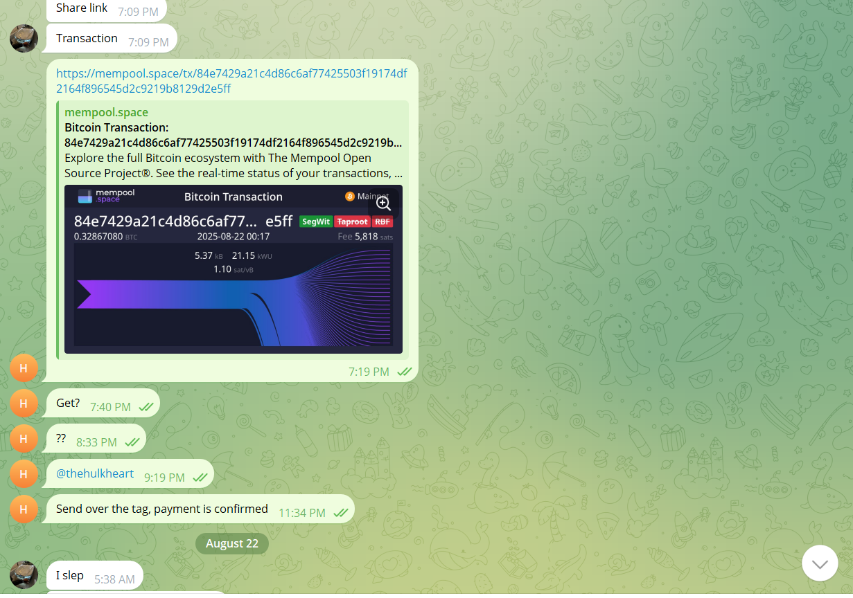 Proof of payment : https://mempool.space/tx/84e7429a21c4d86...8129d2e5ff
